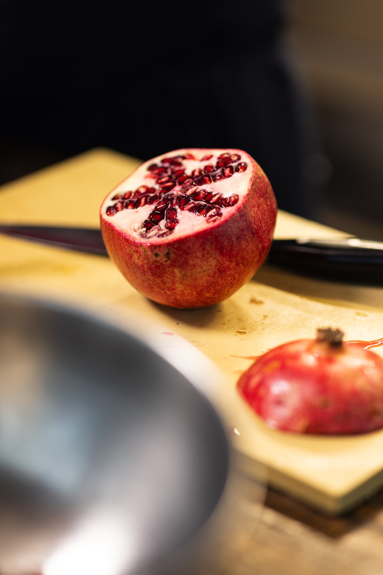 Запікаємо бурячки до готовності та нарізаємо їх на 4 частини. Чистимо гранат на зерна.
