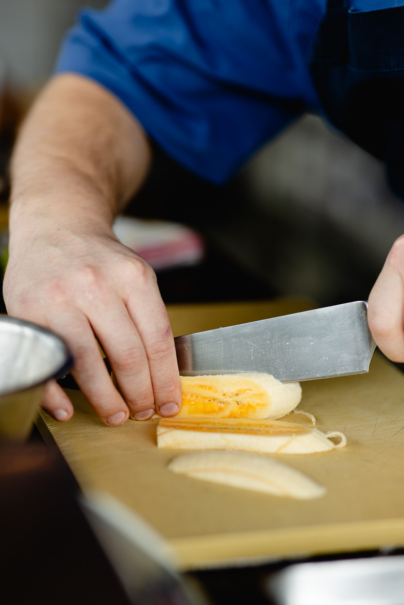 Нарізаємо манго й банан гарним невеликим кубиком.