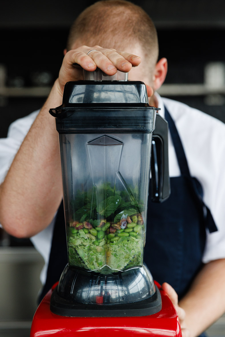 Перебиваємо едамаме, фісташки, йогурт та зелень у блендері до однорідної маси.