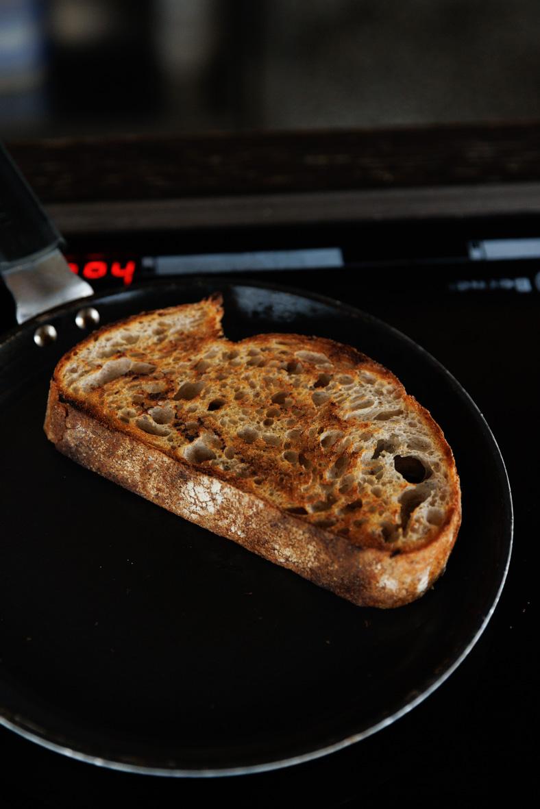 Відрізаємо шматочок хлібу та підскажуємо на пательні.