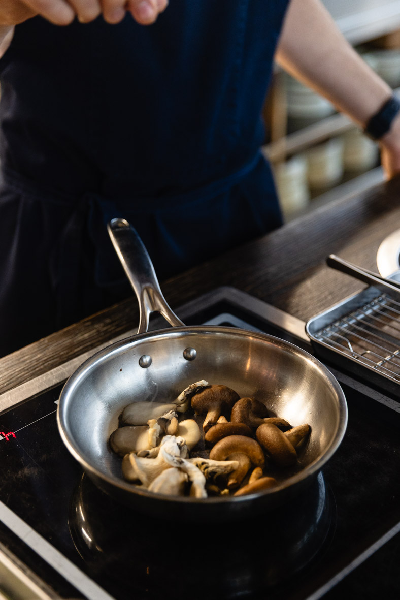 Нарізаємо гриби та обсмажуємо на пательні до готовності.